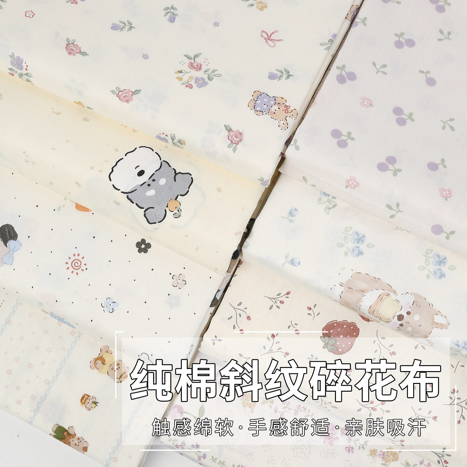 纯棉碎花卡通布料2.35米宽斜纹棉布100全棉宝宝床品连衣裙diy面料