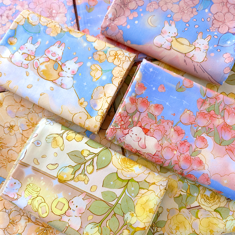 纯棉弹力平纹兔子送福卡通布料手工diy服装裙子旗袍衬衫衣服面料