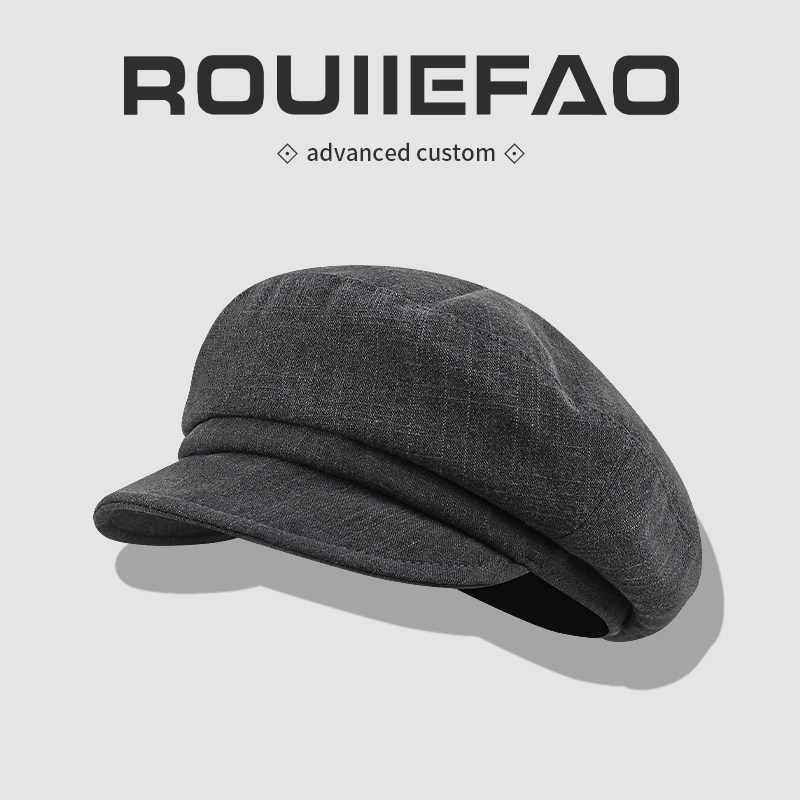 日系文艺复古植物麻料报童帽女休闲百搭显脸小画家贝雷帽八角帽子