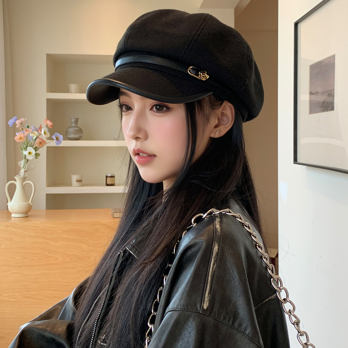 日系复古文艺风黑色鸭舌贝雷帽女休闲百搭气质显脸小八角云朵帽子