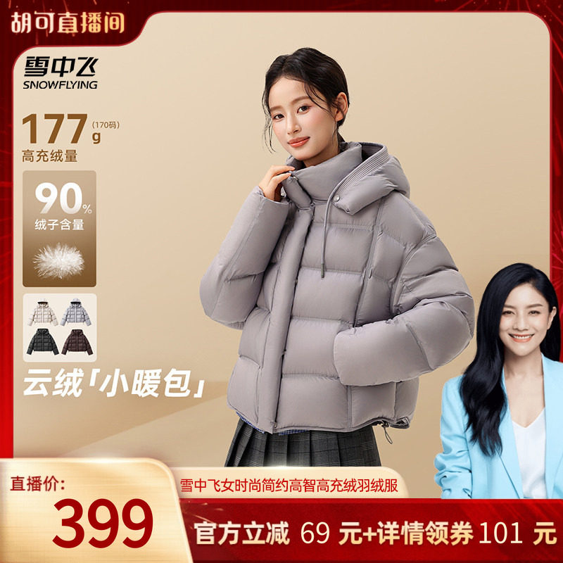 【胡可推荐】雪中飞短款女士连帽韩系复古零压泡芙休闲百搭羽绒服