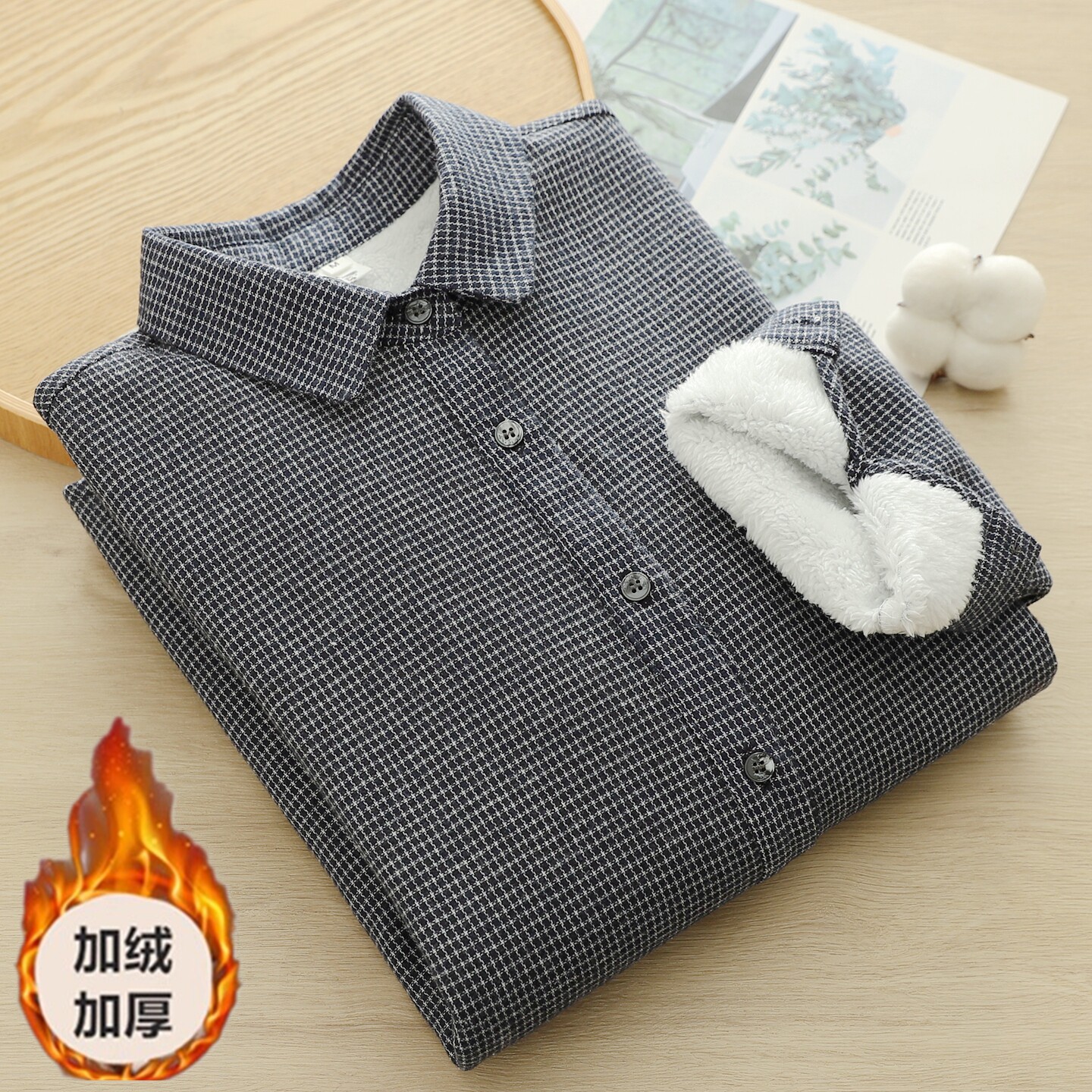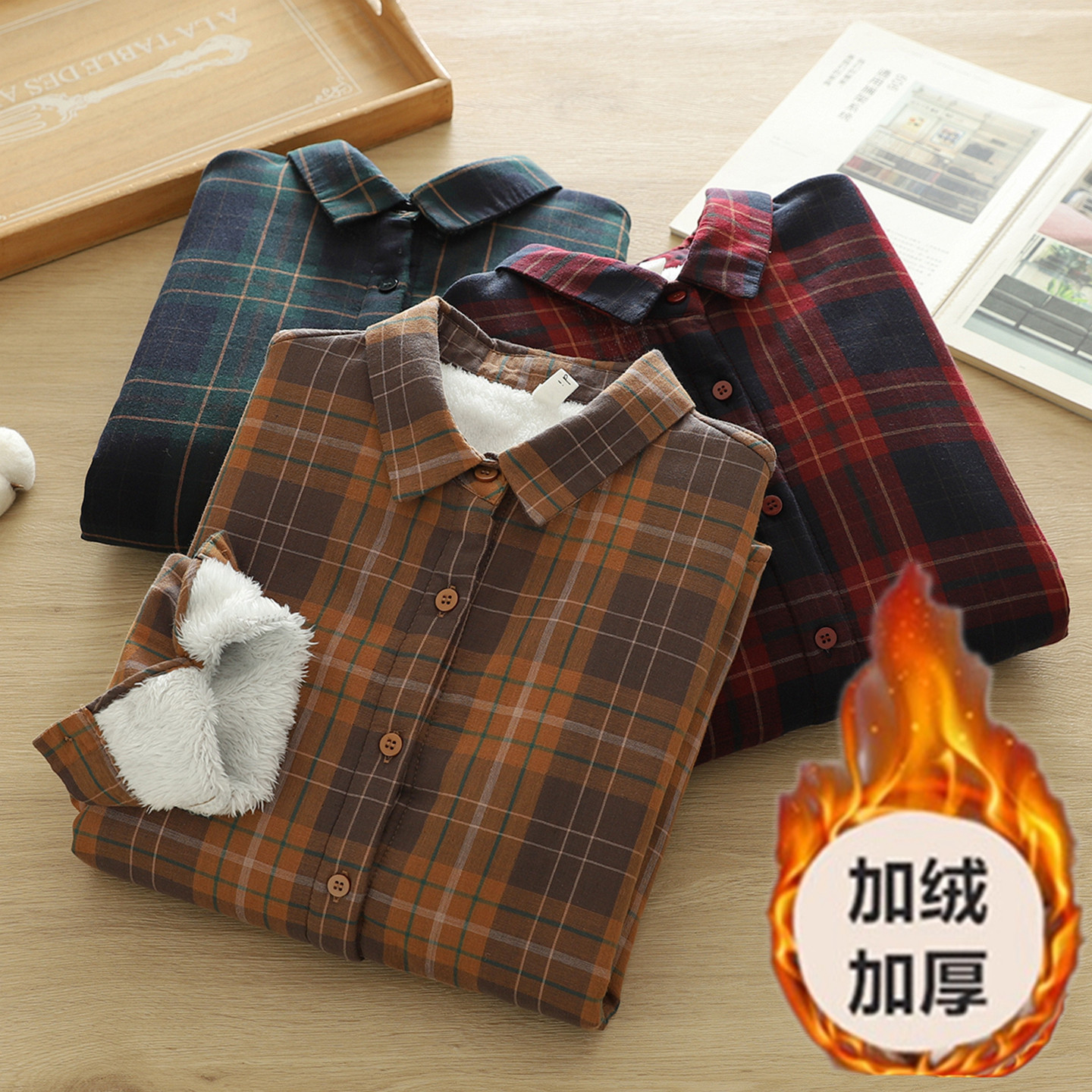 2025冬季文艺小清新气质小格子纯棉加绒加厚衬衫女长袖打底衫学生
