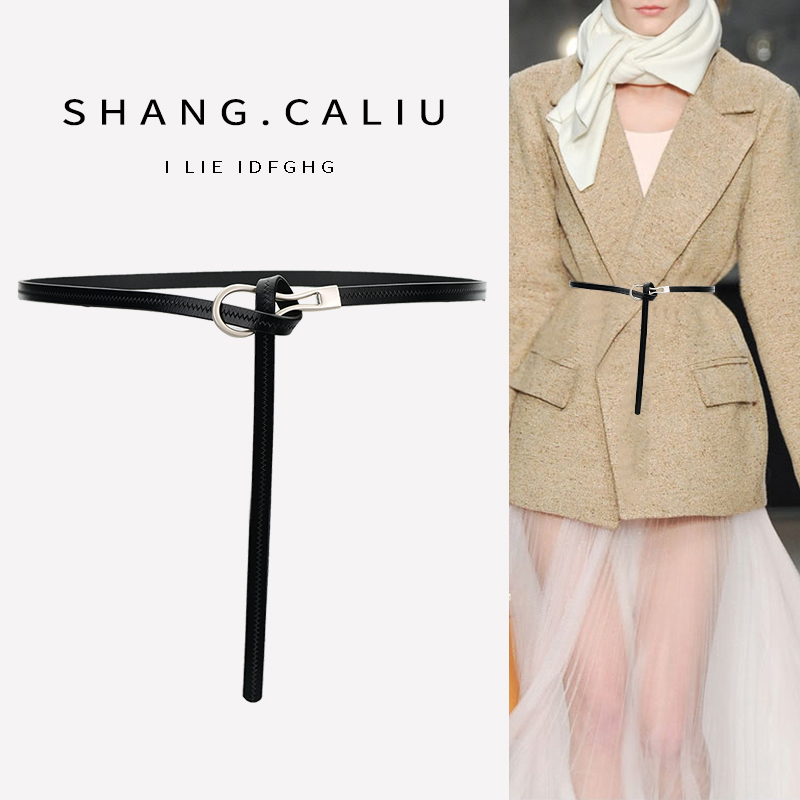 真皮女士细腰带韩版百搭装饰裤带配裙子ins风学生时尚黑色小皮带