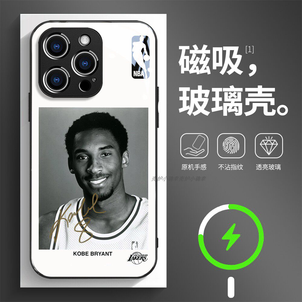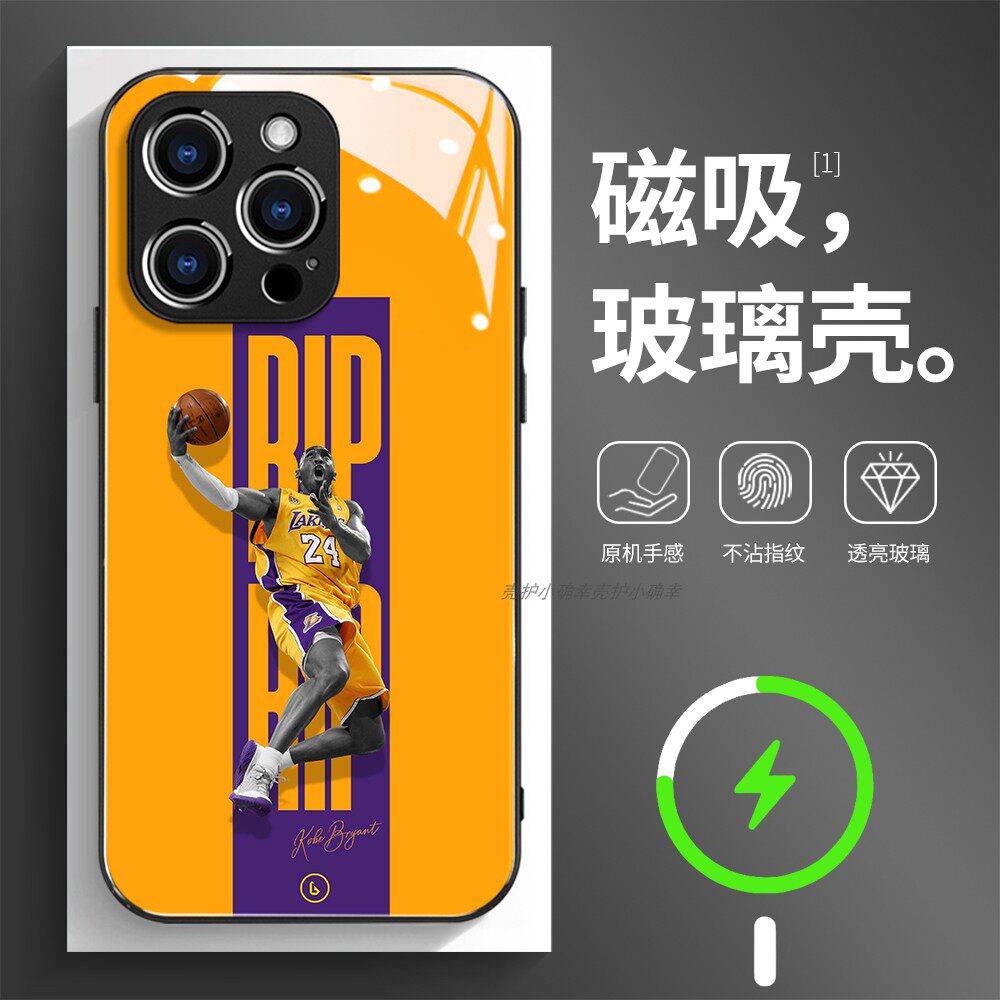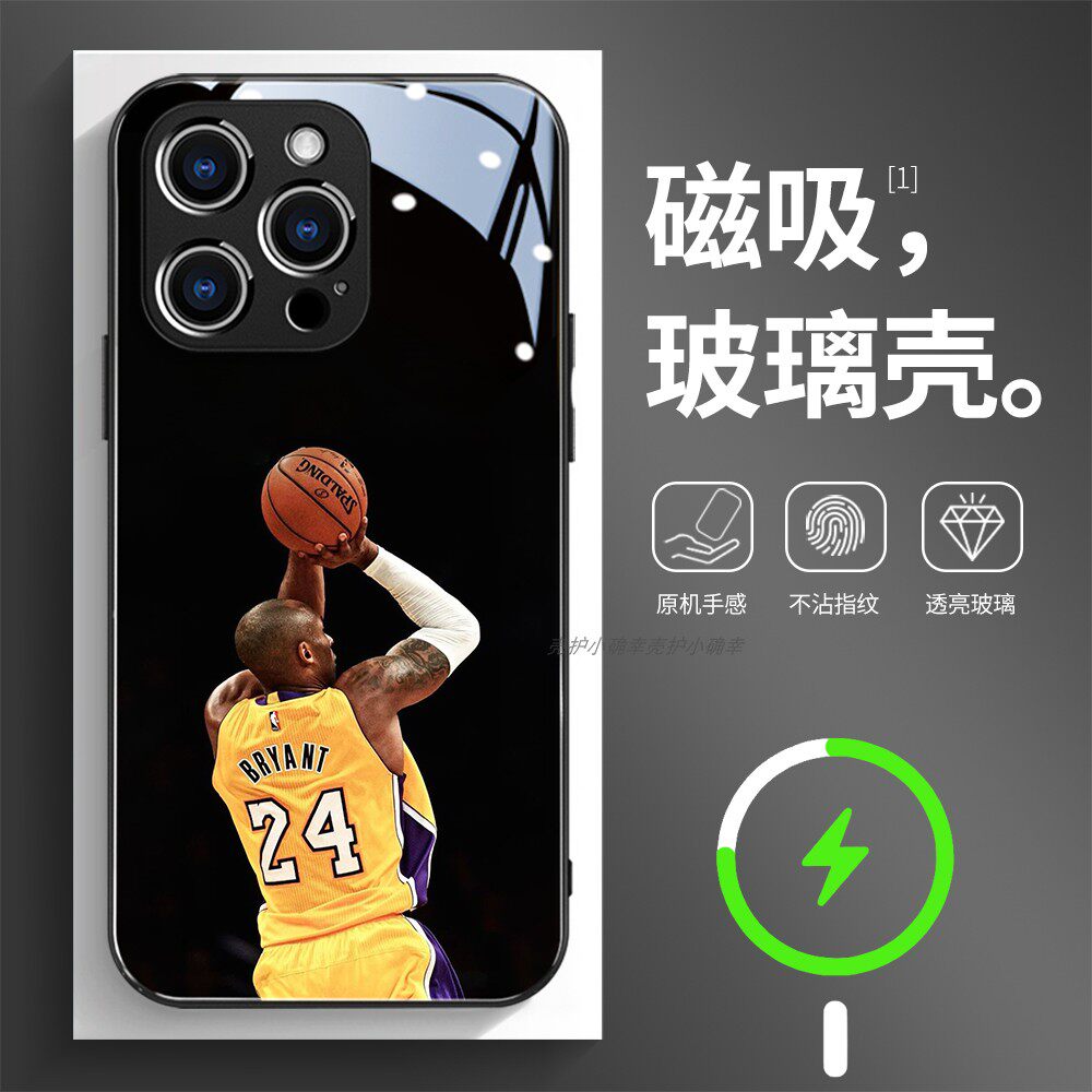 磁吸玻璃手机壳适用苹果17iPhone16plus14Pro15Max13Pro12 11 科比布莱恩特 篮球