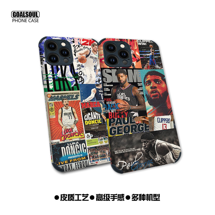 东契奇15pro手机壳ip16PM保罗乔治14Pro詹姆斯15promax科比13pm篮球mate60pro伦纳德P60皮质软壳K60/50杜兰特
