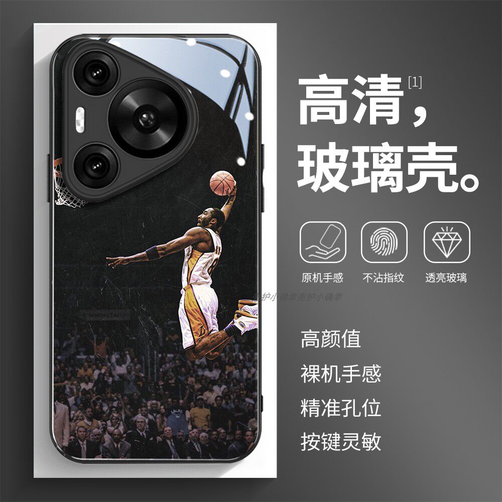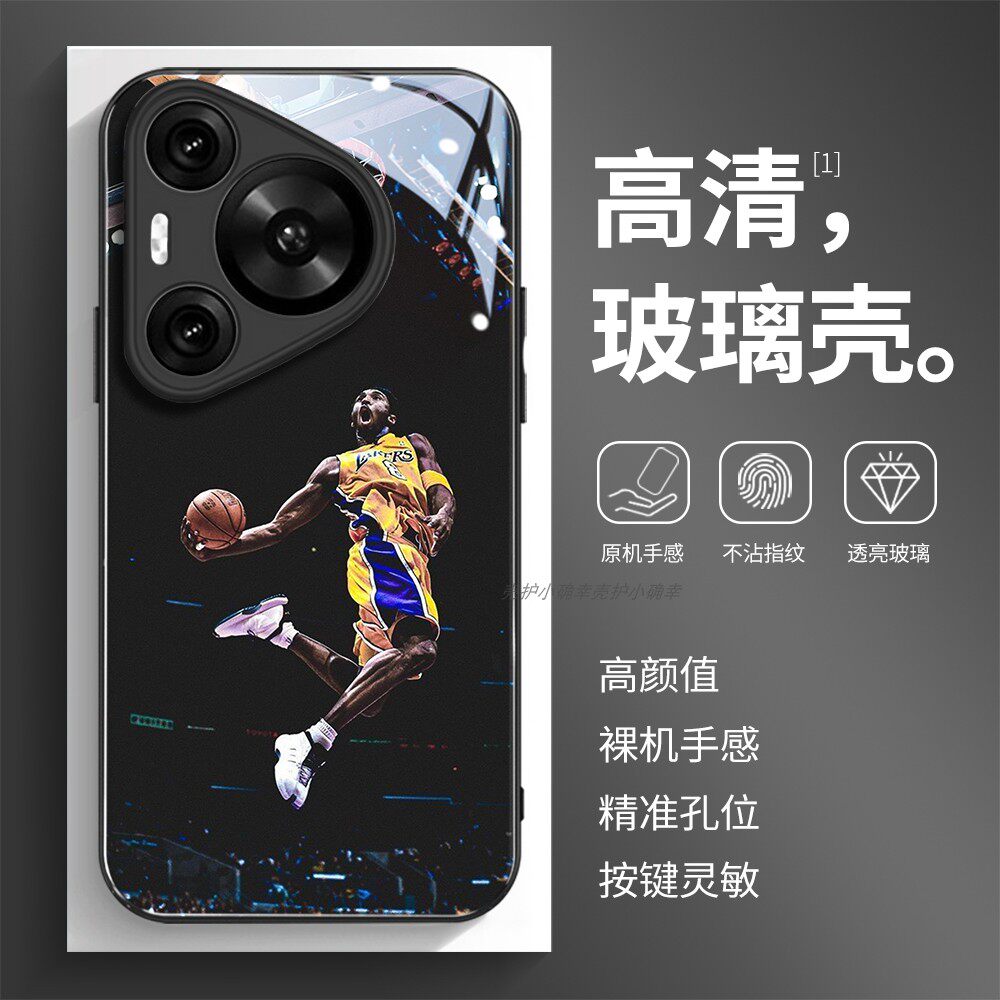 玻璃手机壳适用华为Mate80 70 60 20 30 40E 40 50 P30 P40 P50 P60 P70 PURA70Pro 80 科比篮球