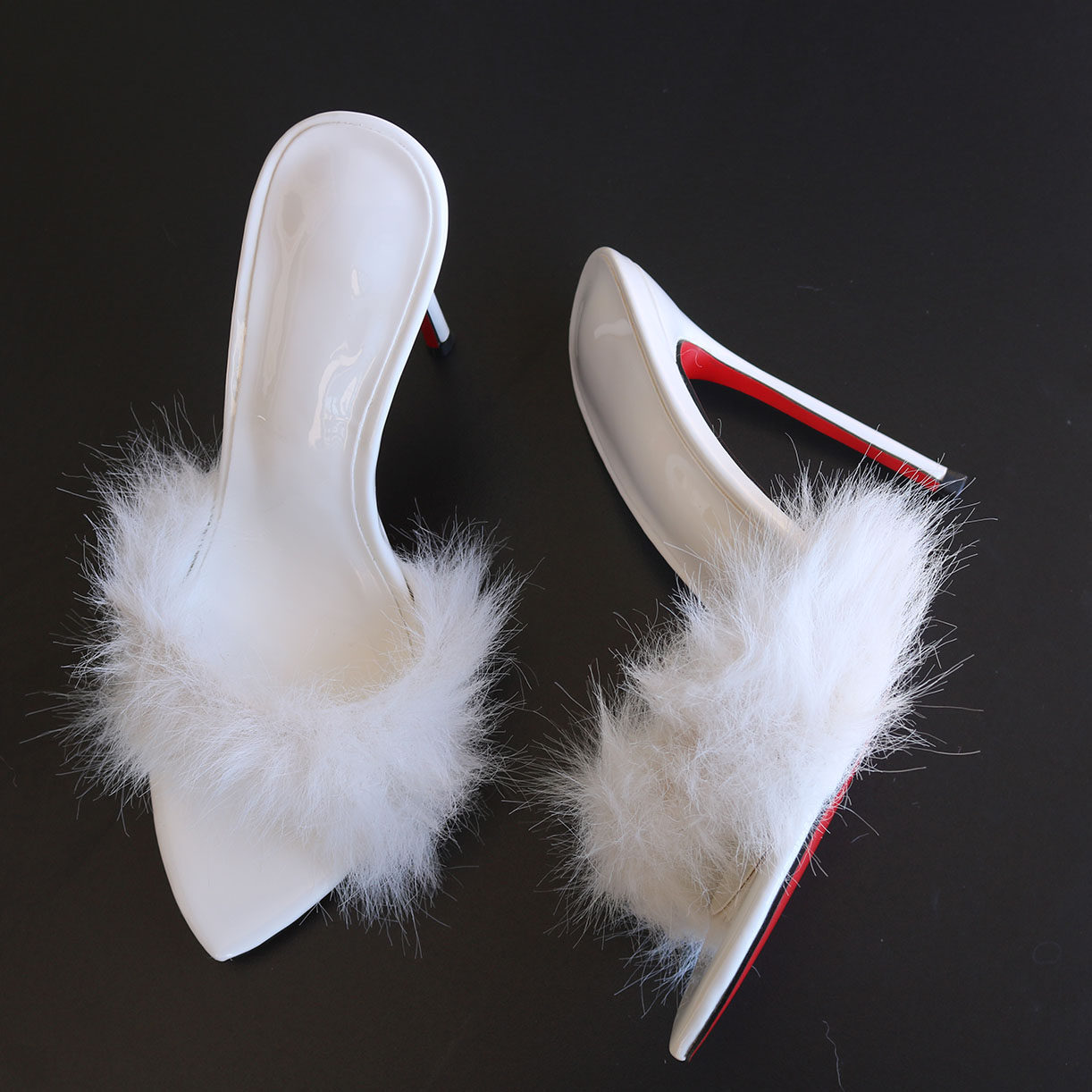 白色毛毛一字拖鞋红底细高跟凉鞋性感法式宴会名媛定制大小码13CM