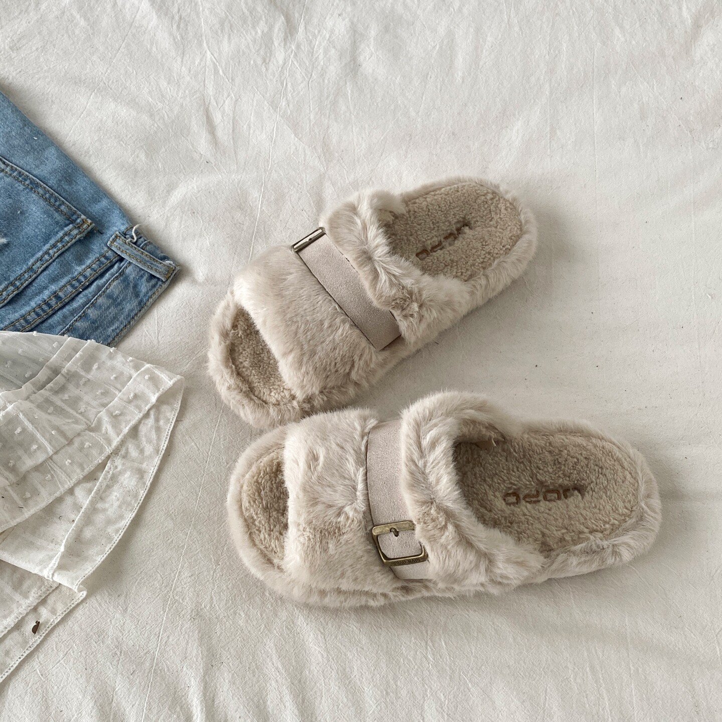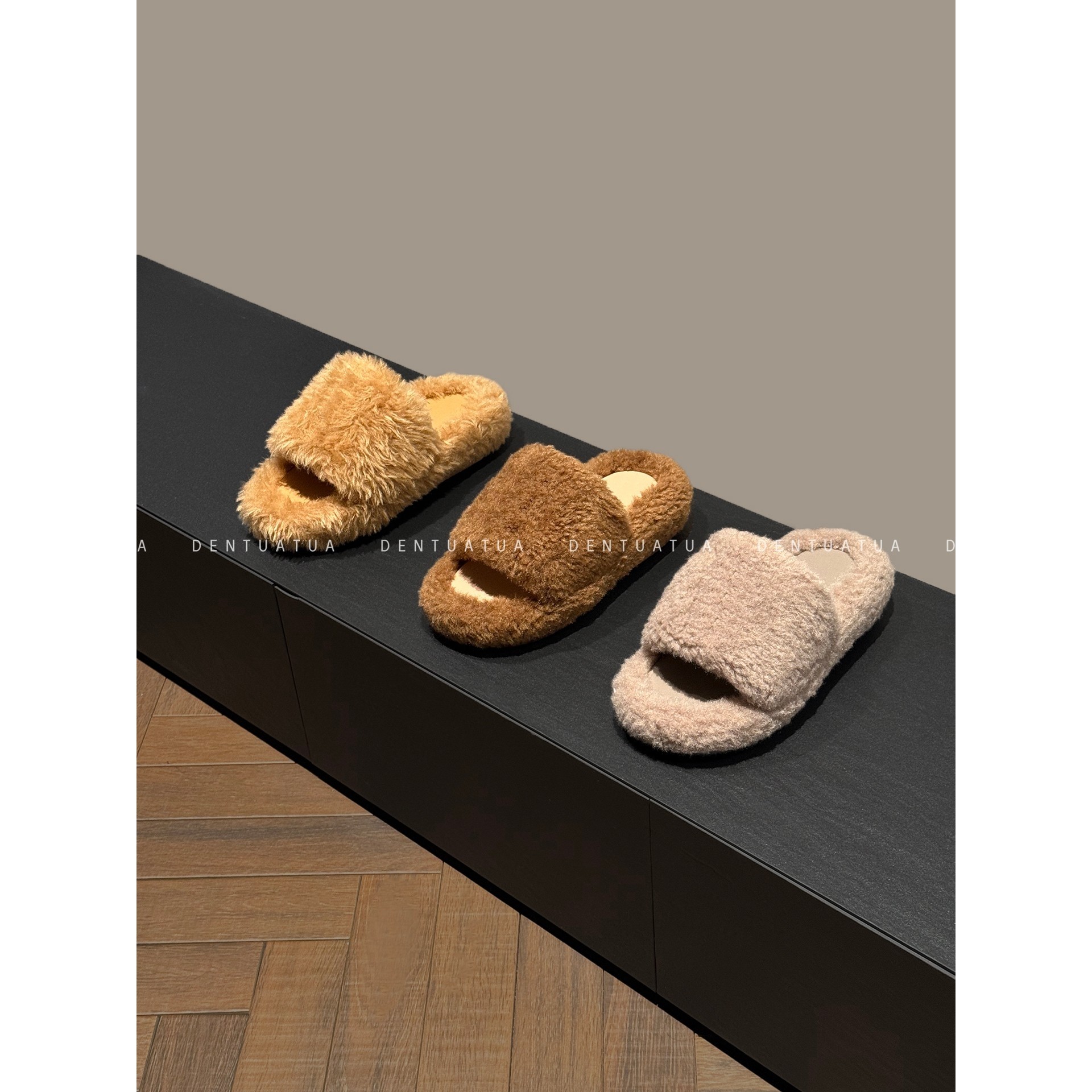 DENTUATUA 侘寂暖居主义的静谧诗篇!25ss 厚底毛毛一字拖鞋 女