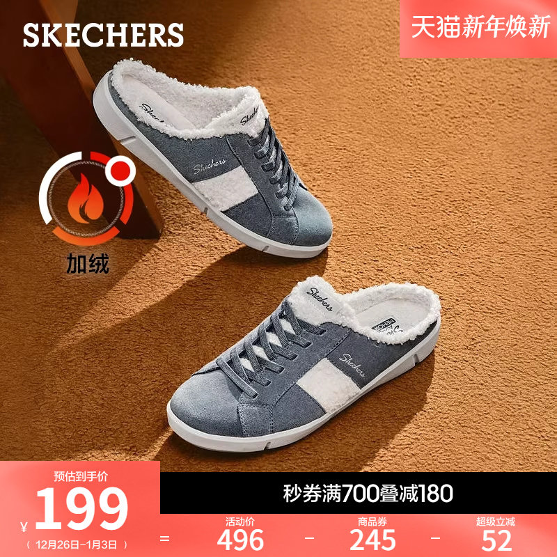 斯凯奇秋冬季女复古美式半拖加绒保暖拖鞋时尚毛毛鞋一字拖室内鞋