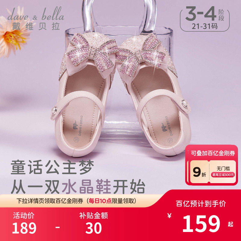 戴维贝拉女童皮鞋粉色单鞋2026春季新款儿童公主鞋亮晶晶宝宝鞋子