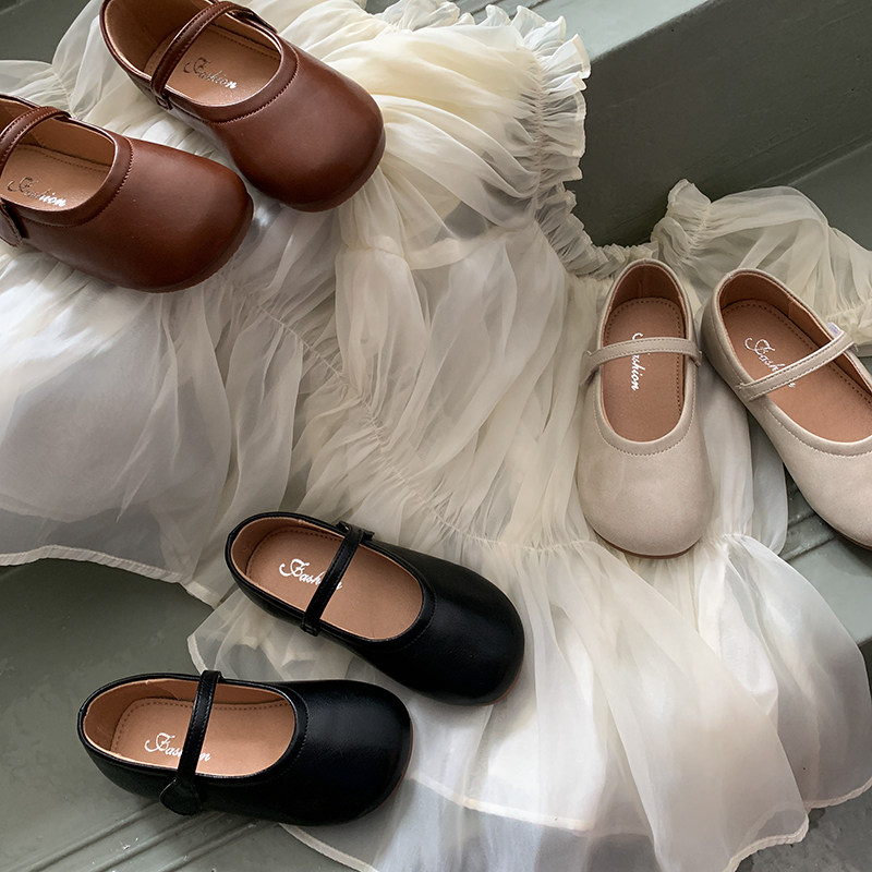 女童单皮鞋2024春季童鞋小女孩韩版简约百搭圆头复古魔术贴公主鞋