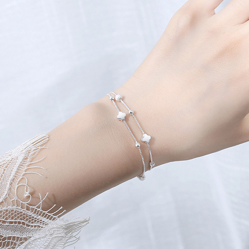 四叶草链女纯银双层设计转运珠银珠幸运草手饰品2026新款爆款网红
