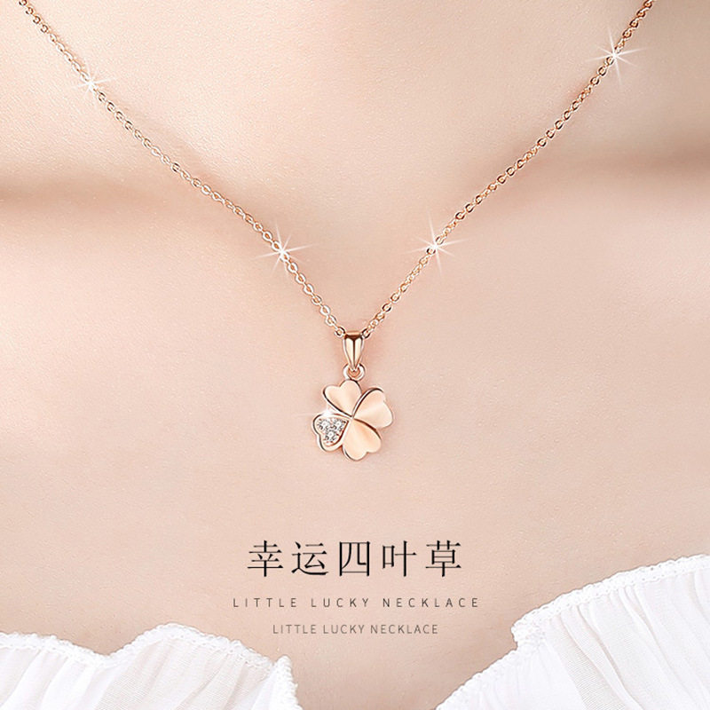 四叶草项链女款925纯银锁骨链爱心吊坠轻奢小众2026新款爆款饰品