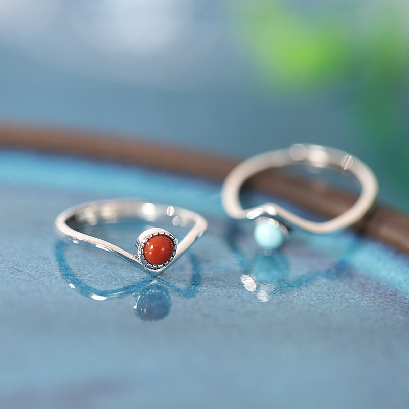 戒指女小众设计高级感925纯银时尚个性南红玛瑙绿松石指环送闺蜜