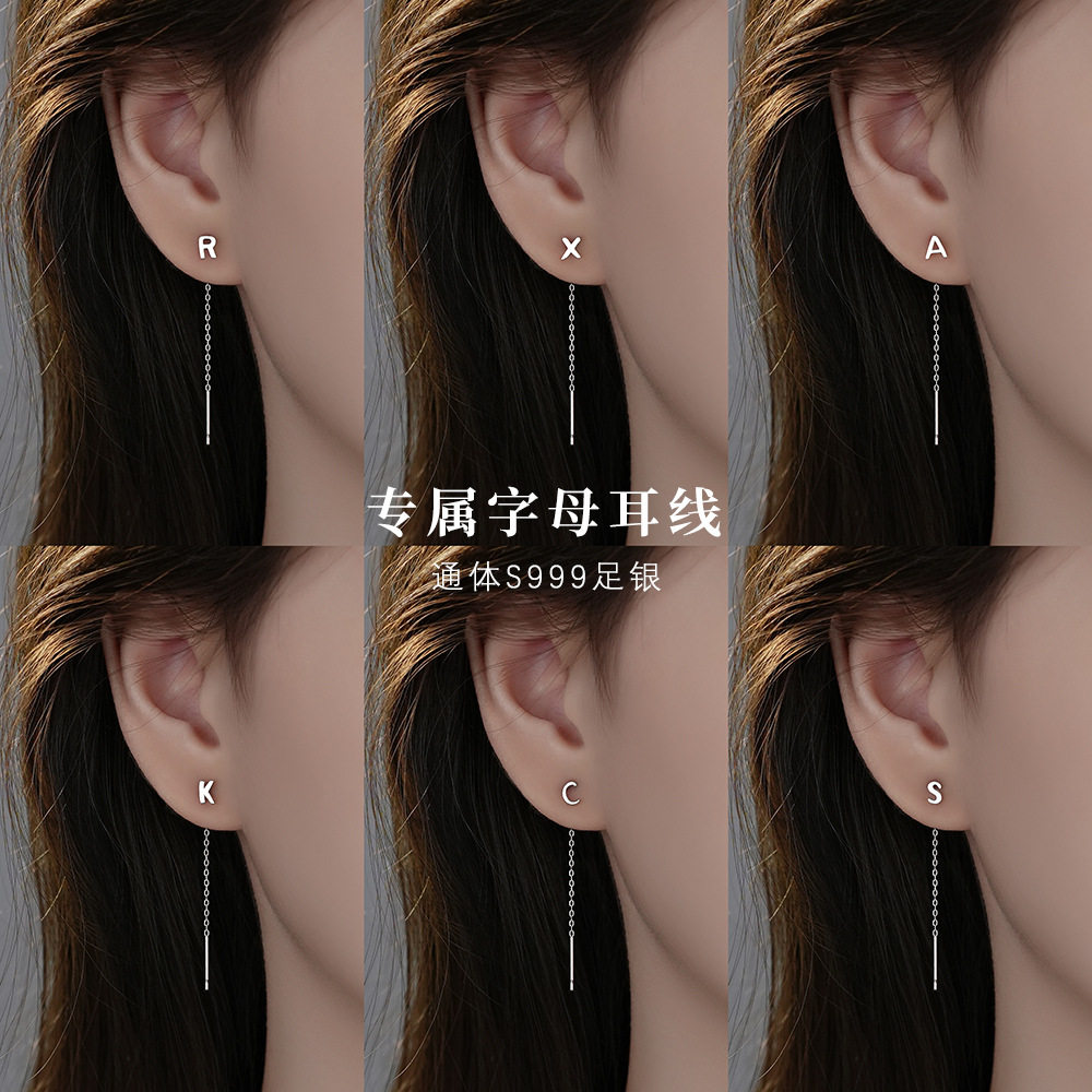 耳线女999纯银正品2026新款今年流行爆款26字母流苏耳饰免摘睡觉
