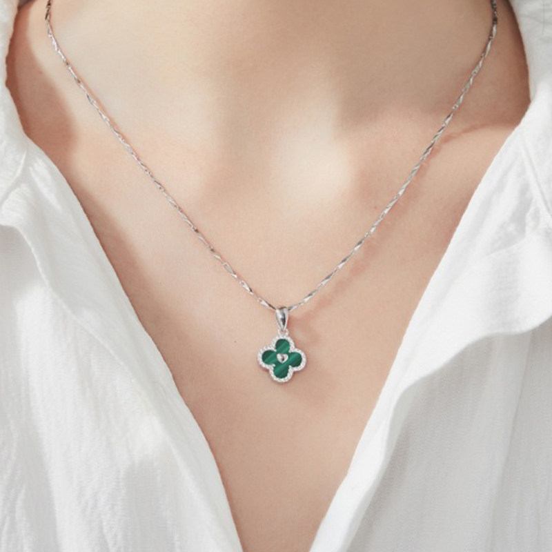 四叶草项链女2026新款爆款999纯银锁骨链轻奢小众女生孔雀石饰品
