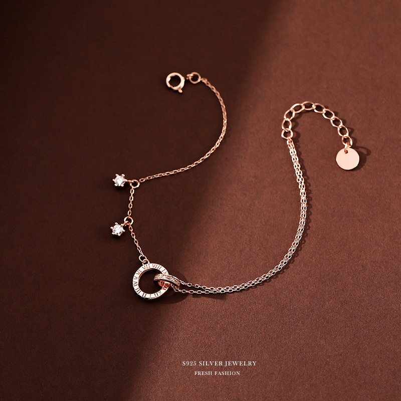 手链女款2026新款s925纯银罗马数字双环手饰女生闺蜜轻奢小众精致