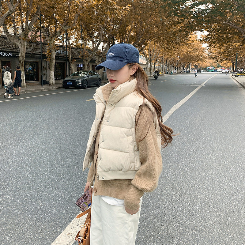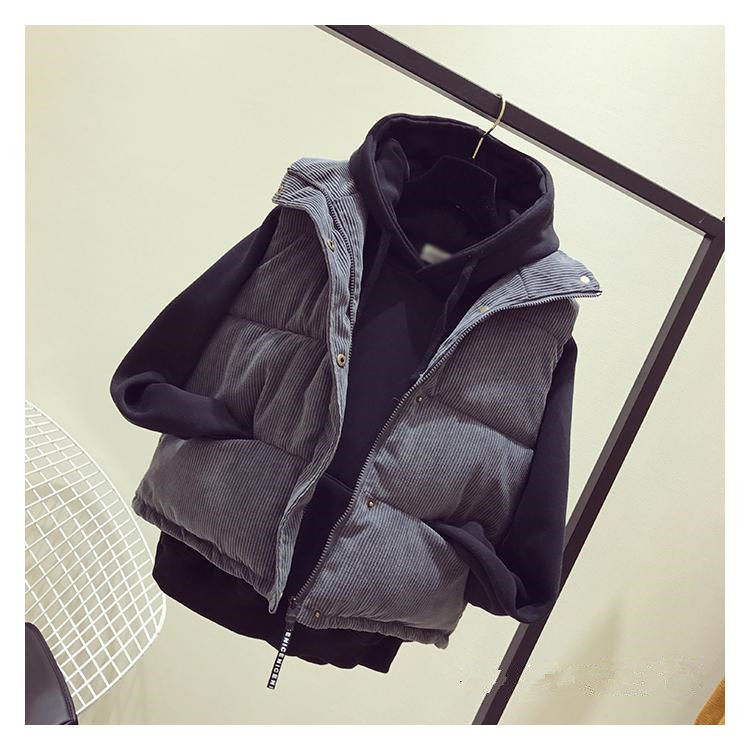 宽松灯芯绒马甲女秋冬季坎肩背心外套韩版面包服新款加厚短款棉衣