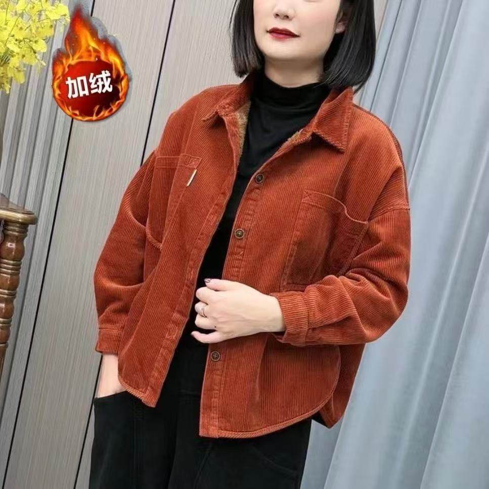 话里加绒加厚保暖灯芯绒外套2026冬季新款韩版休闲宽松气质上衣女
