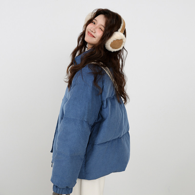 2025新款冬季韩版灯芯绒立领宽松短款羽绒服女小个子时尚保暖外套