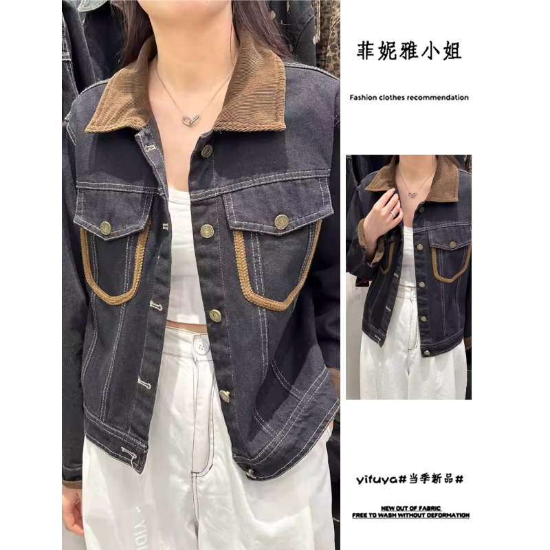 韩版时尚撞色灯芯绒拼接牛仔外套女2025秋季新款宽松显瘦上衣夹克