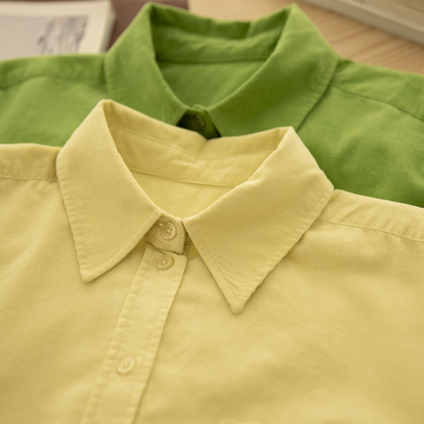 青绿 韩版宽松长袖亮色灯芯绒衬衫女显瘦休闲上衣薄外套叠穿衬衣