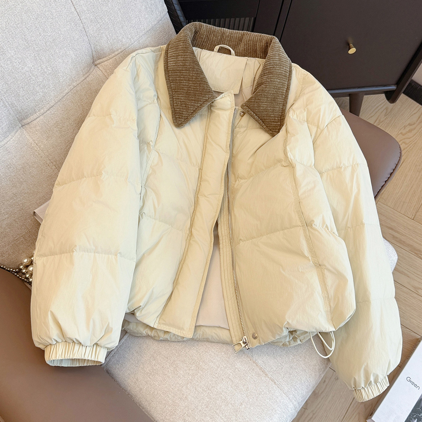 2025秋冬新款韩版灯芯绒小翻领短款羽绒服女加厚宽松保暖羽绒外套