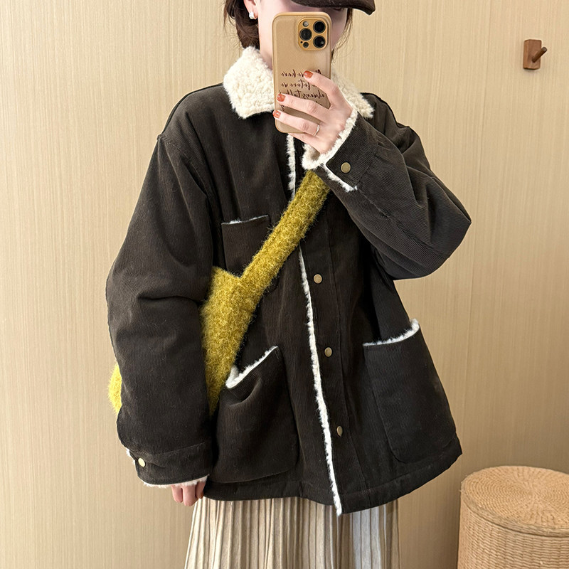 金苏一 灯芯绒棉衣女冬季韩版宽松羊羔毛内里加厚保暖外套上衣潮