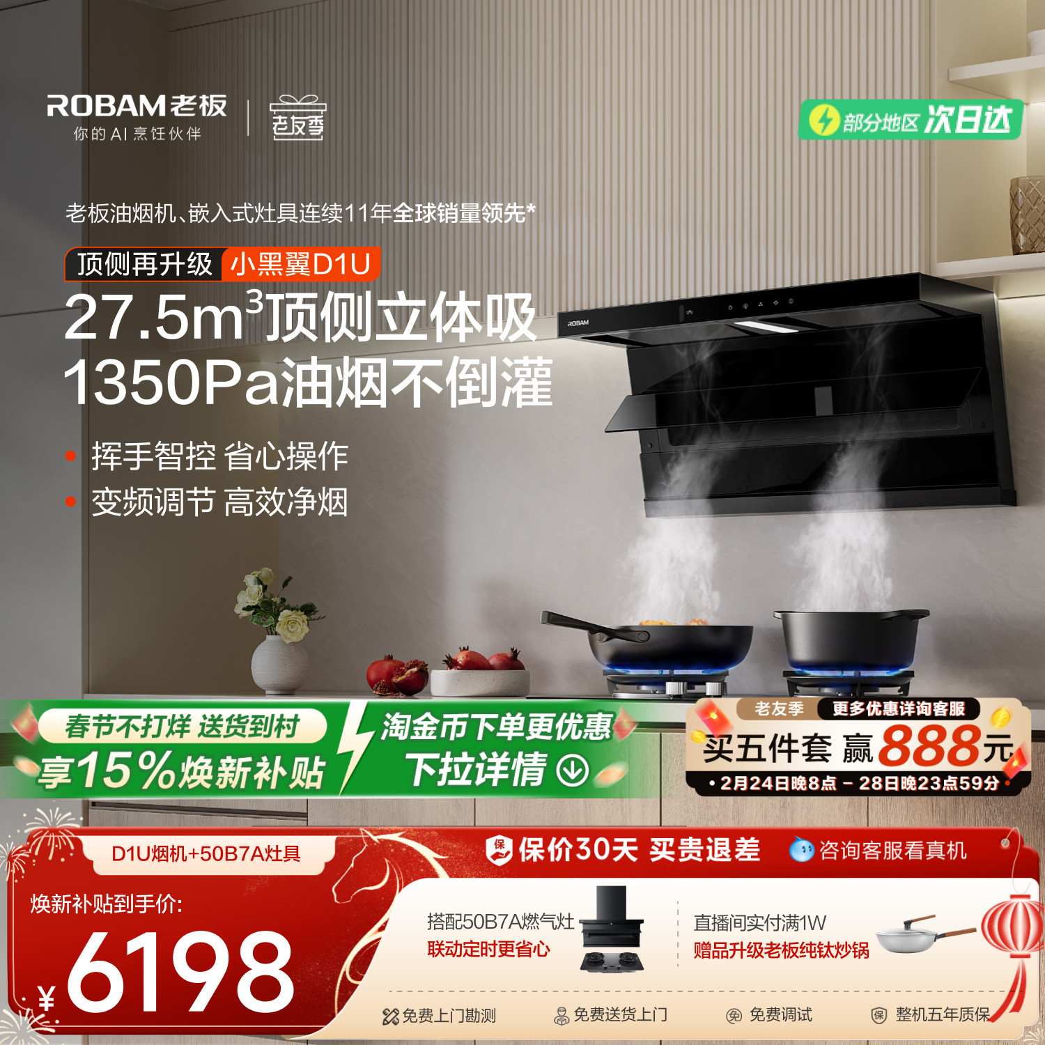 老板小黑翼D1U烟机灶具套装联动抽油烟机燃气灶一套官方旗舰店