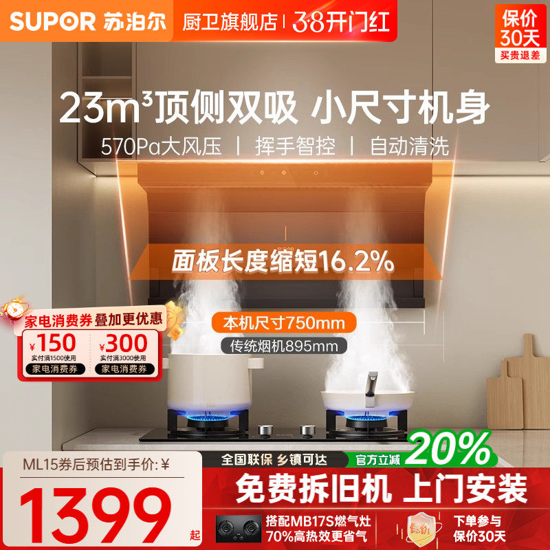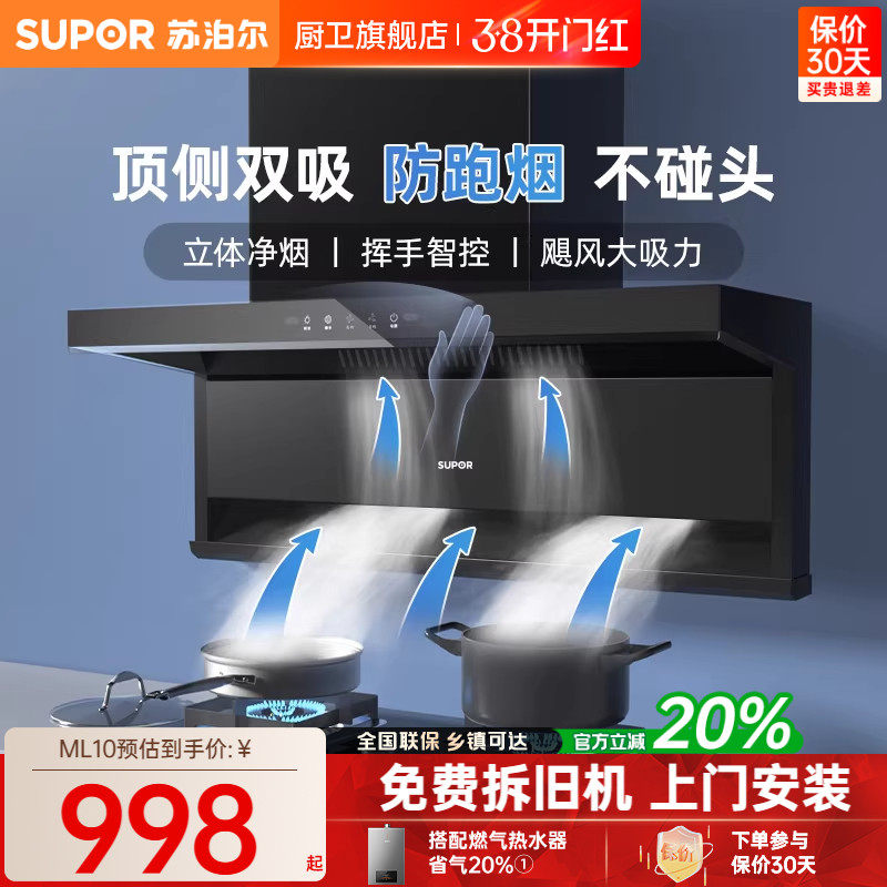 苏泊尔ML15烟机顶侧双吸抽油烟机家用厨房小尺寸吸油烟机灶具套装