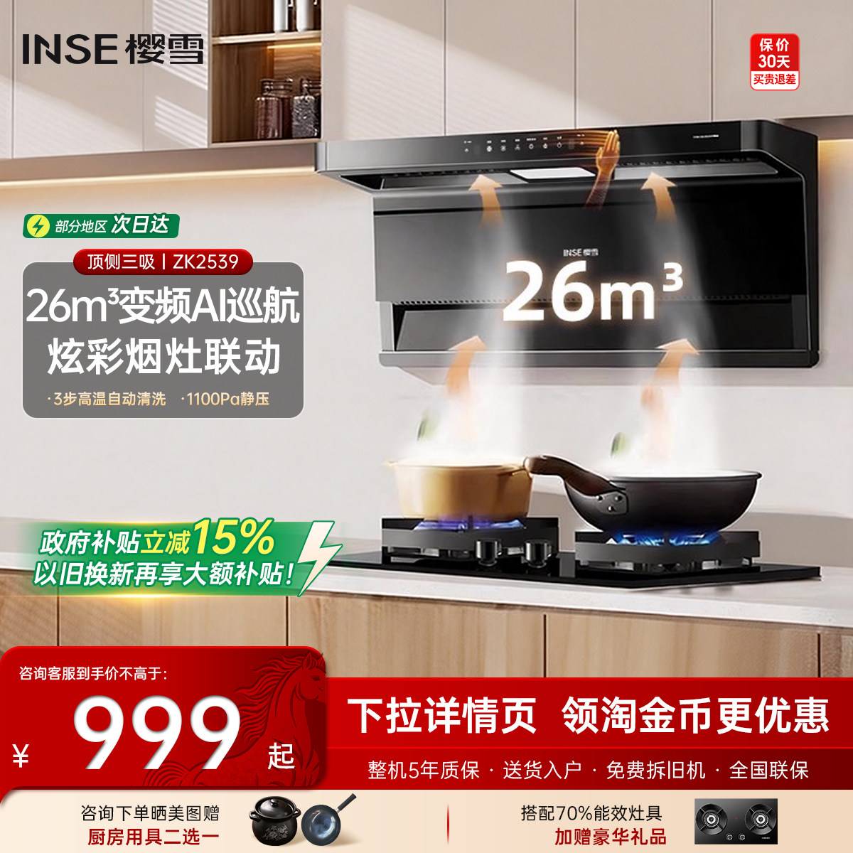樱雪K2539烟机灶具套装顶侧双吸以旧换新补贴抽油烟机燃气灶套餐