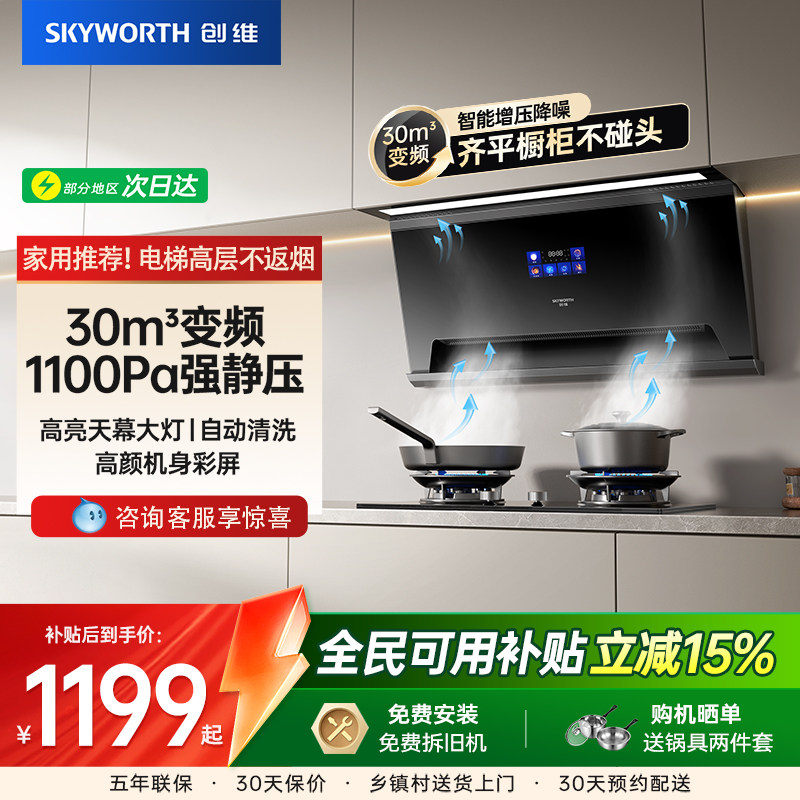 创维Y732顶侧双吸油烟机家用厨房大吸力变频抽油烟机燃气灶具套装