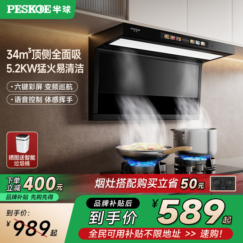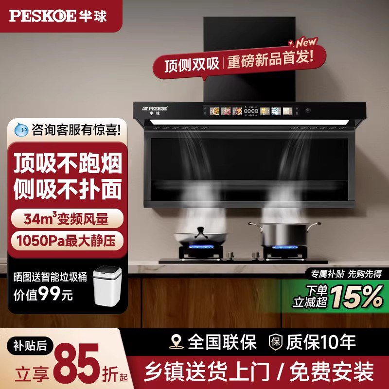 半球顶侧双吸家用厨房抽油烟机灶具套装燃气灶油烟机一体烟灶套餐