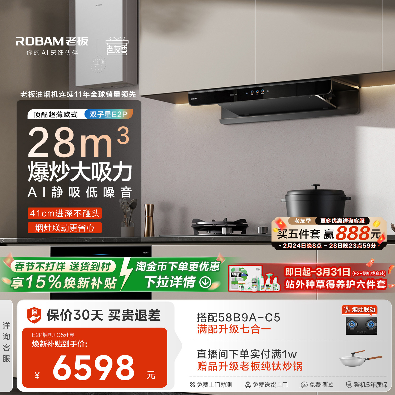 老板E2P套系抽油烟机燃气灶一套家用大吸力烟机灶具套装官方旗舰