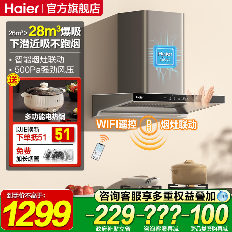 海尔T11Pro抽油烟机灶具套装燃气煤气灶吸油烟机一体以旧换新补贴