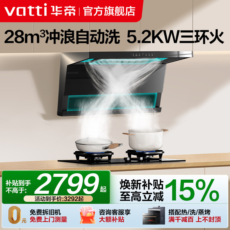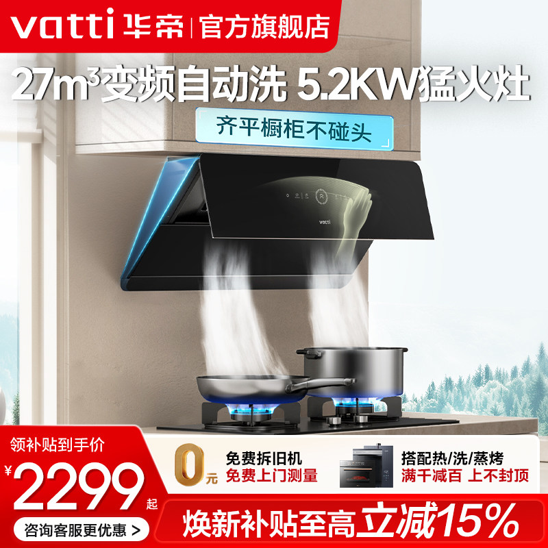 华帝抽油烟机燃气灶套餐S2+71B家用欧式自动洗烟机灶具套装旗舰店