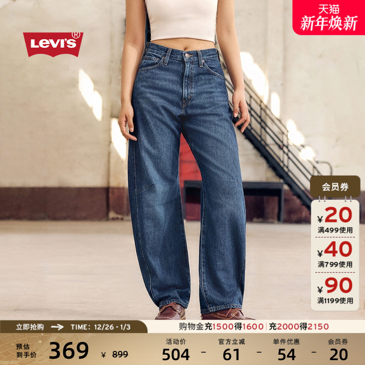 【补贴改裤】Levi's李维斯26年春夏新款女士BARREL高腰锥形牛仔裤