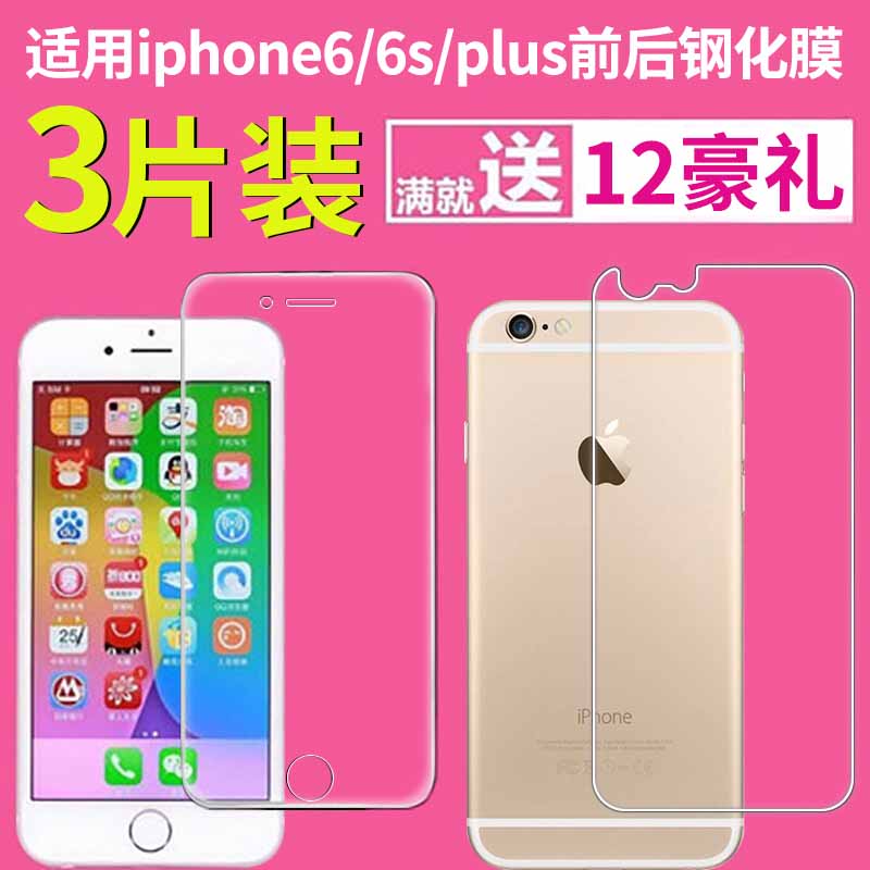 适用iPhone6s背膜钢化膜苹果6splus背膜钢化膜透明6splus前后玻璃膜防指纹苹果6钢化背膜透明手机彩膜改色膜