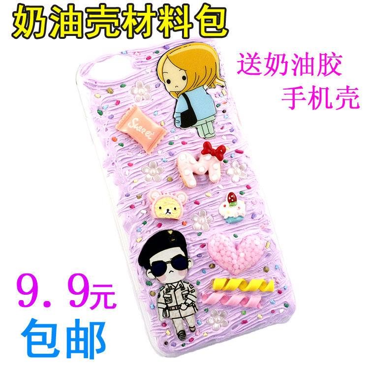 卡通樱桃小丸子奶油胶iphone6手机壳果酱手工制作贴钻DIY材料包