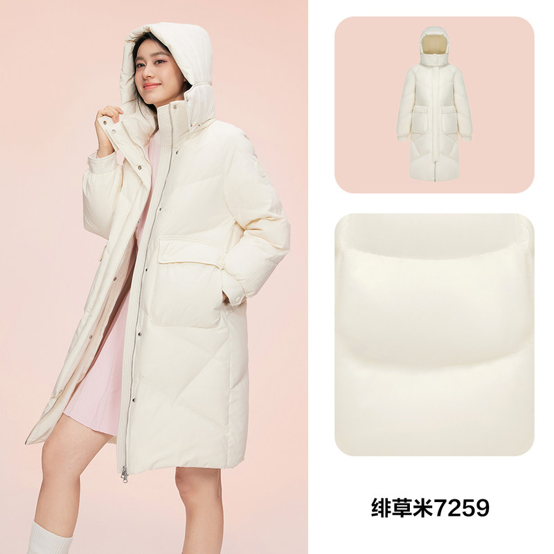 鸭鸭羽绒服女2025秋冬反季过膝中长款连帽休闲百搭加厚鸭绒外套A
