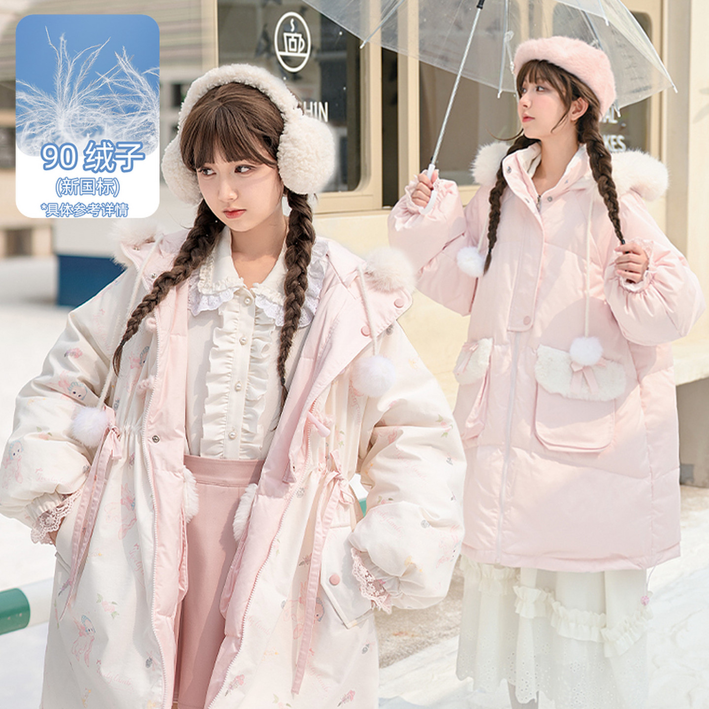 森女部落甜美可爱双面穿粉色羽绒服女中长款冬季2025款小个子外套