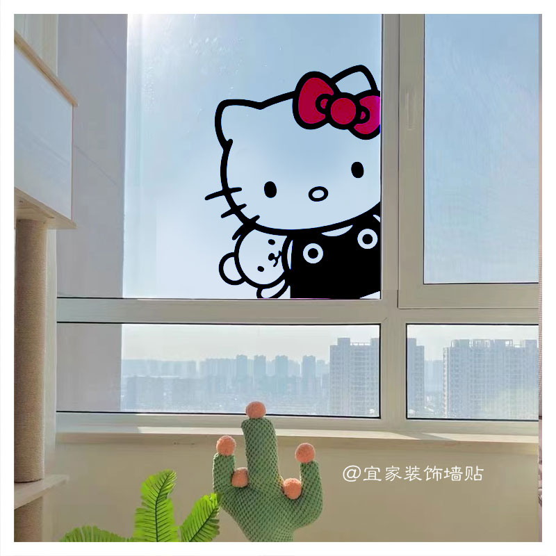 hellokitty猫卡通墙贴纸 卧室温馨白墙装饰客厅防撞玻璃门上贴纸