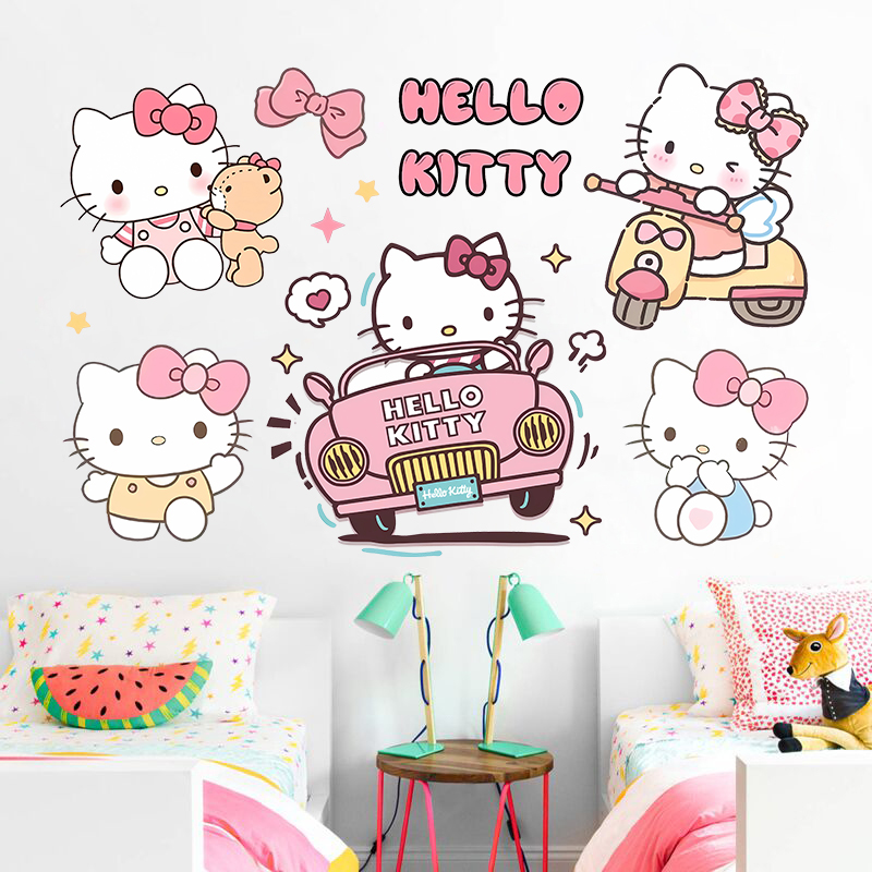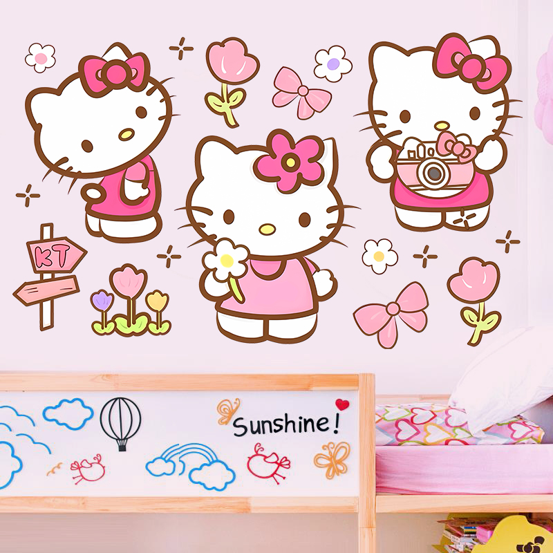 hellokitty墙贴纸画儿童女孩卧室床头改造公主房间布置墙面装饰品