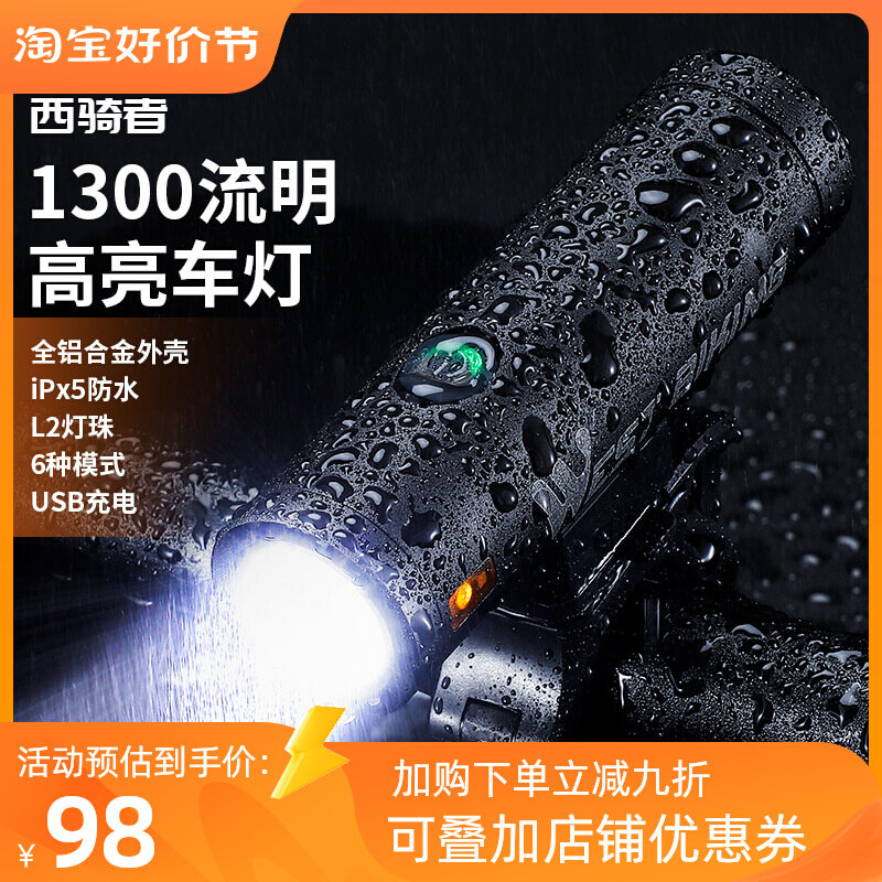 西骑者自行车车灯高亮强光手电筒USB充电车前灯超亮防雨骑行装备