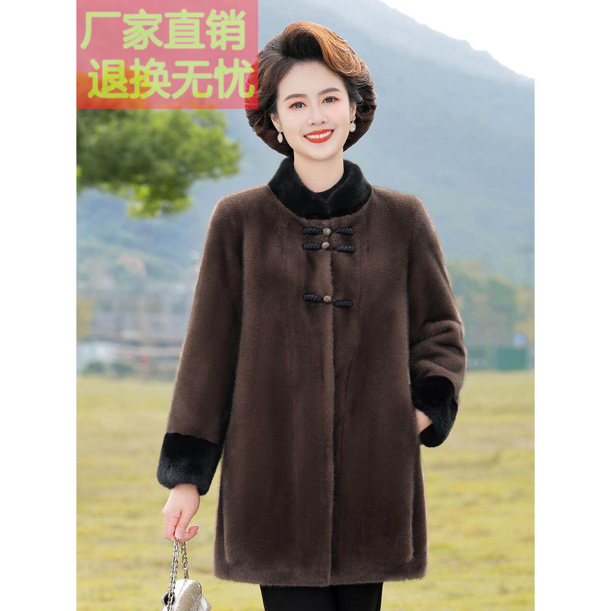 中老年人女皮毛一体大衣加厚新款妈妈秋冬装休闲大码貂绒皮草外套
