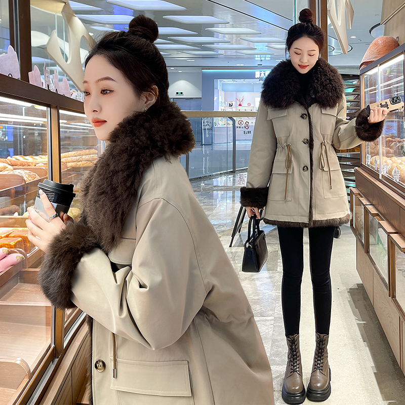2025新款真兔皮毛一体内胆大衣女羊毛领年轻收腰皮草中长外套冬