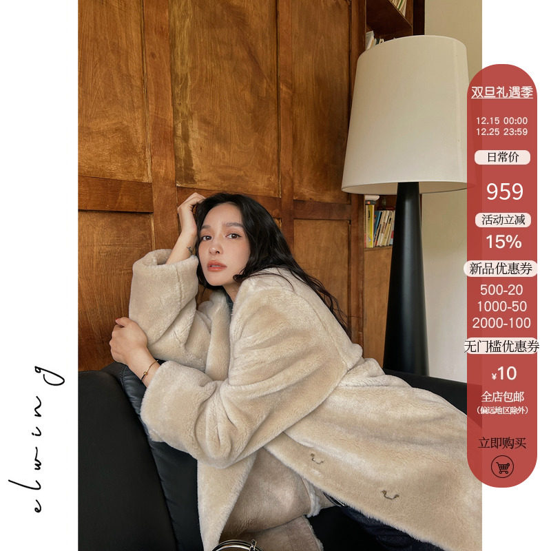 Elwing原创澳洲100羊毛皮毛一体老钱风皮草外套大衣长款毛毛外套