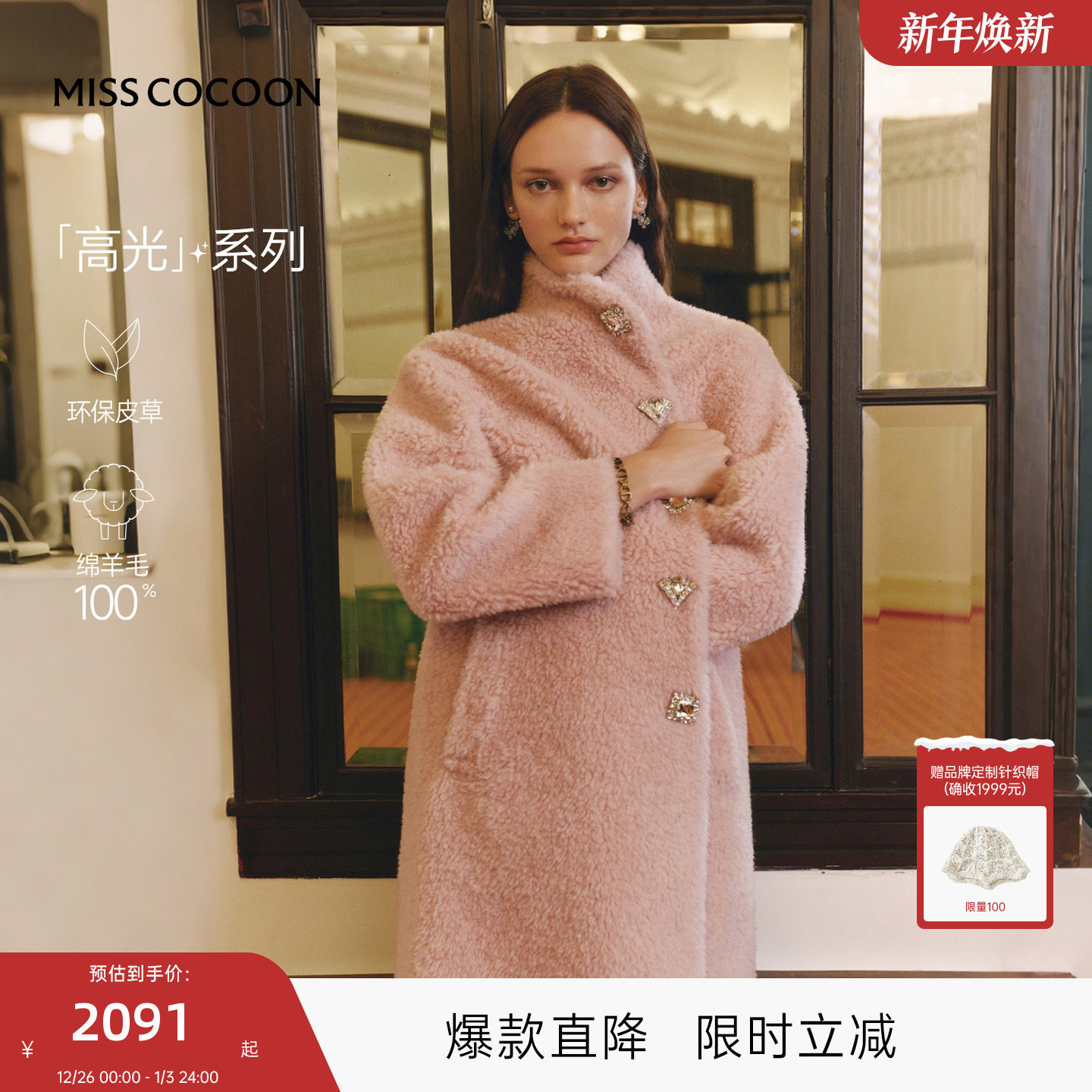 MISSCOCOON可可尼皮毛一体立领大衣女2025秋冬新款长款绵羊毛皮草