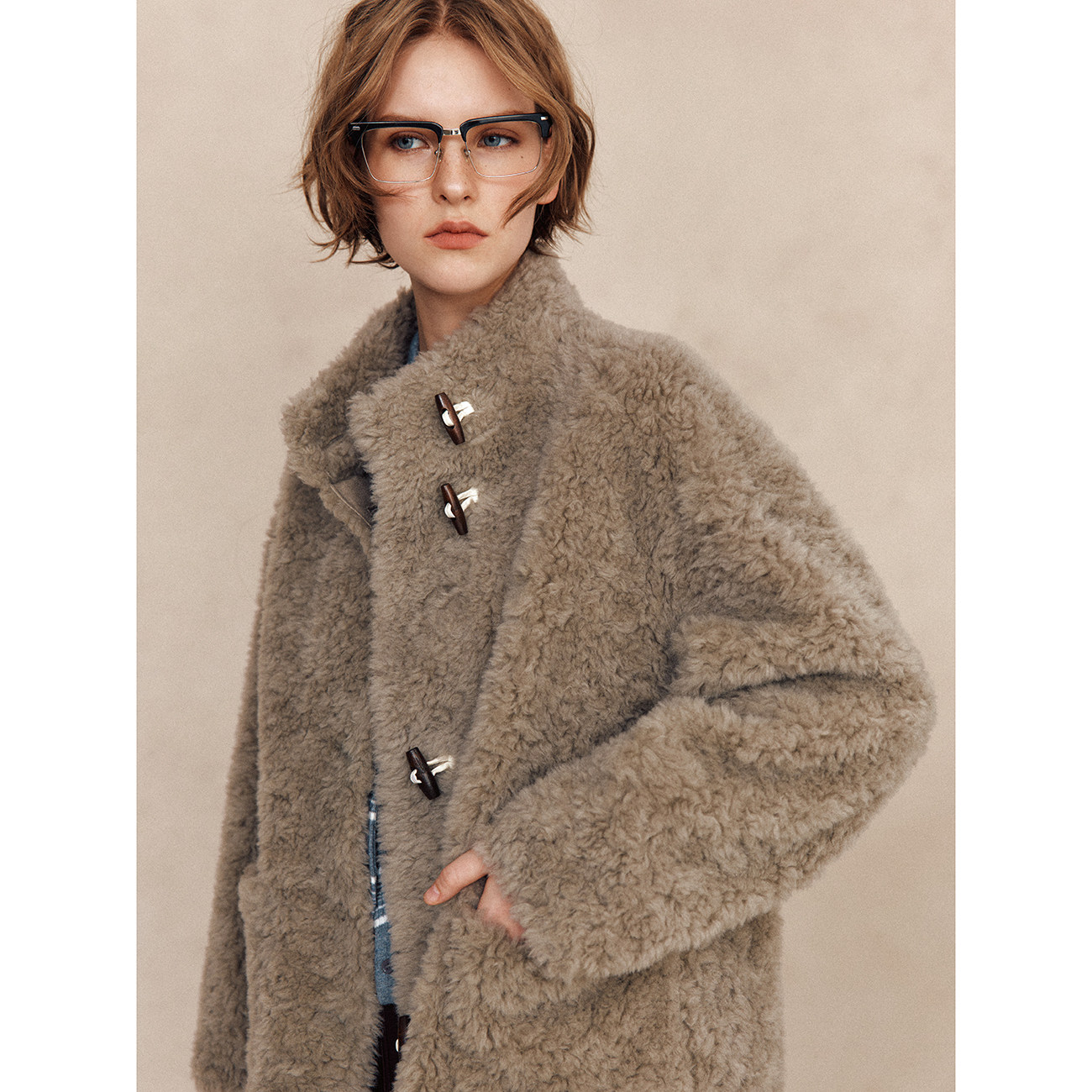 软糯全羊毛皮毛一体牛角扣皮草外套2025冬立领中长款羊羔毛大衣女