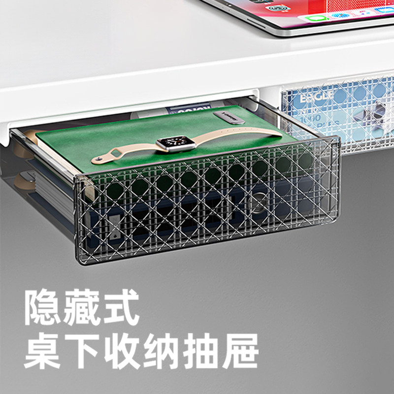 桌下抽屉隐藏杂物整理收纳超强承重免打孔不伤桌办公收纳轻奢美学